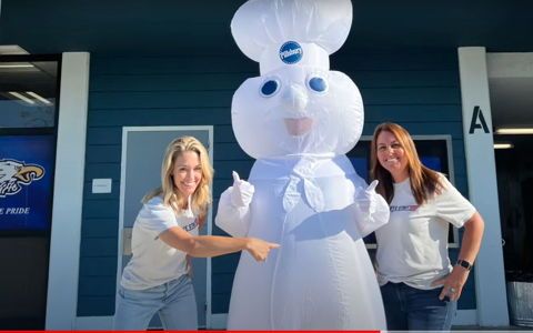 Did we mention he did all this while wearing a Pillsbury Doughboy costume?