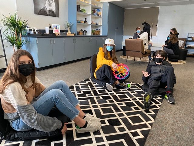 Students visit the WellSpace, also known as The Corner, at McAuliffe Middle School in Los Alamitos in 2021. Courtesy photo.
