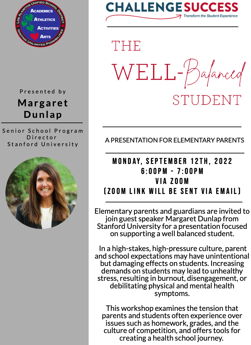 HAPPENING MONDAY, SEPT. 12: The Los Alamitos Unified School District is offering a virtual workshop on how elementary school parents and guardians can support a well-balanced student. ZOOM link here. Passcode: 500114. More information below.