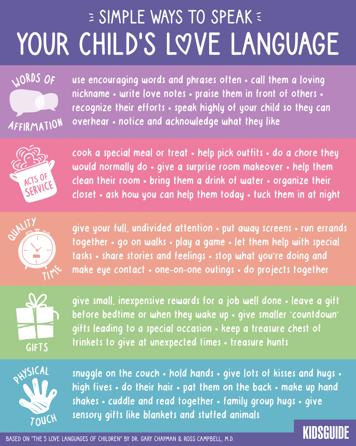 Kidsguide is offering advice and ideas on how to show your kiddo love in a manner they can comprehend.
