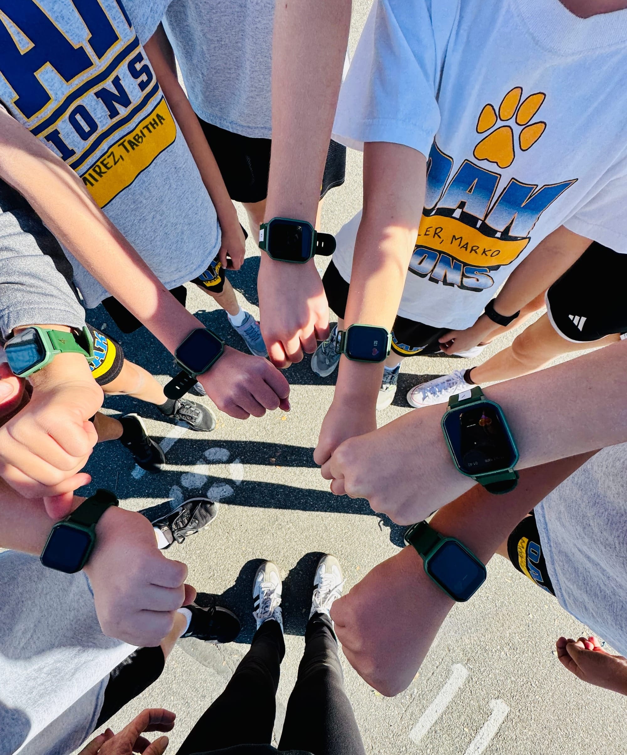 The monitors are worn on the wrist and are easy to use. “It's a really good tool for kids,” Velasco explained, “Because someone, for example, might have to run a 6:30 mile to get into that 80% heart rate zone … whereas somebody else might have to just run a twelve minute mile to get into theirs. … So everyone who's running at the same heart rate is working at the same level.”