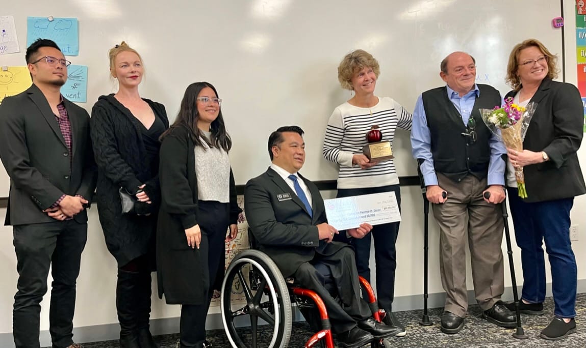 Each honoree was given a lofty apple-topped trophy and a goodie bag from sponsor SchoolsFirst Federal Credit Union. In November, the six educators will also be honored during a ceremony at the Disneyland Hotel where they will receive $25,000 from the Orange County Teachers of the Year Award Foundation. The five TK-12 teachers can now also compete to become a 2026 California Teacher of the Year.