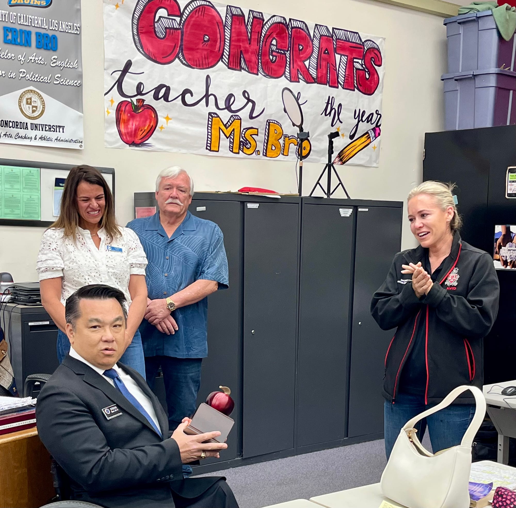 A cheering squad of more than a dozen people streamed into Erin Bro’s classroom at San Clemente High School the morning of May 1 to deliver the news.