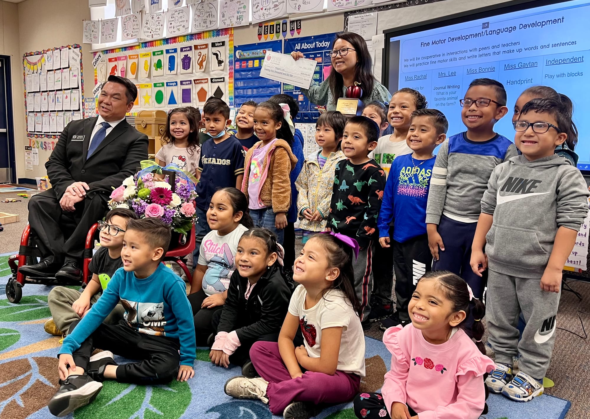 “Good job, Mrs. Lee!,” exclaimed one of the boys in the class of four and five-year-old students. “I’m so proud of all of you!,” Lee told her class. Lee’s father, husband and two young daughters were there in support.