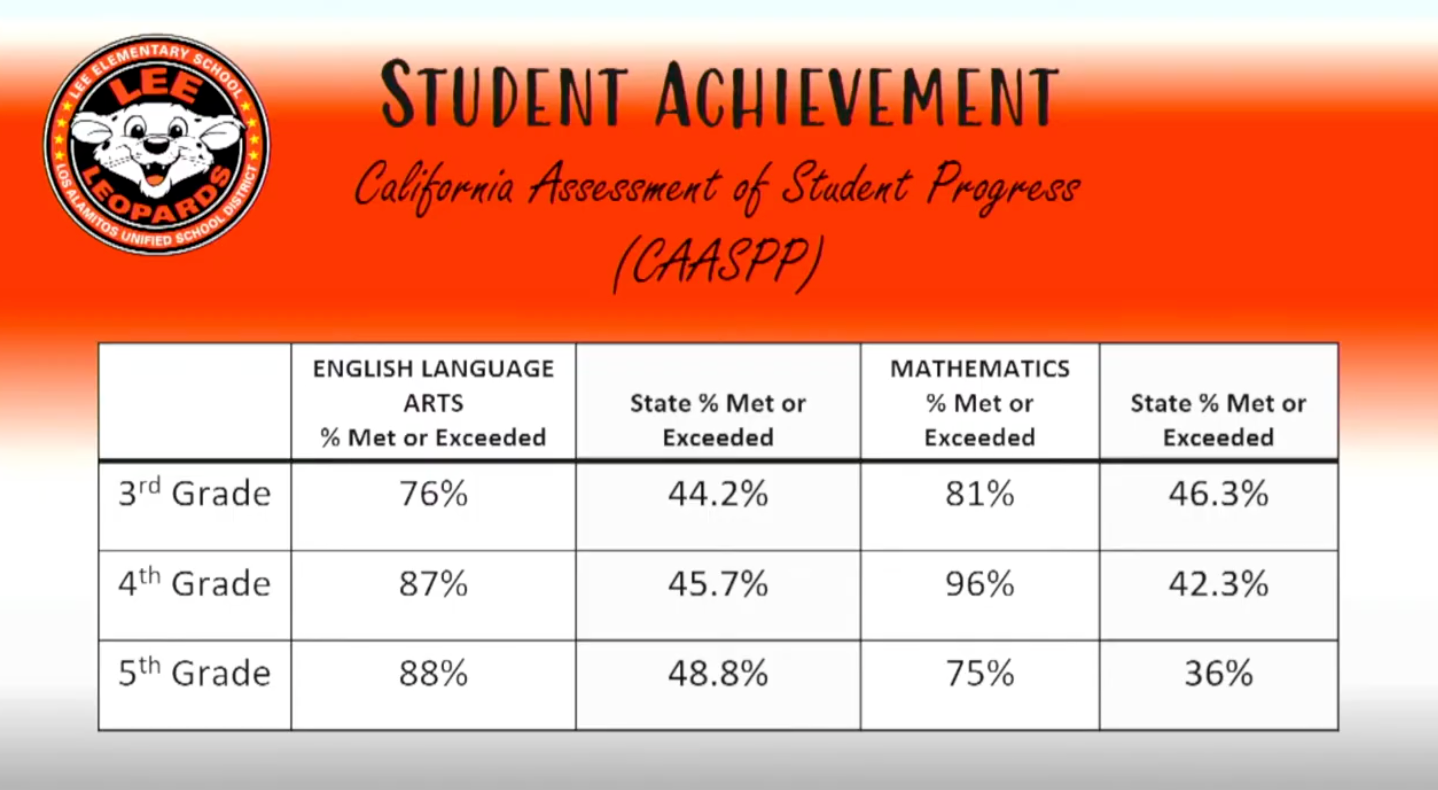 Willems also talked about the schoolâs academics by referencing studentsâ performance on the California Assessment of Student Performance and Progress (CAASPP) tests taken in the spring of 2025 by third, fourth, and fifth graders.