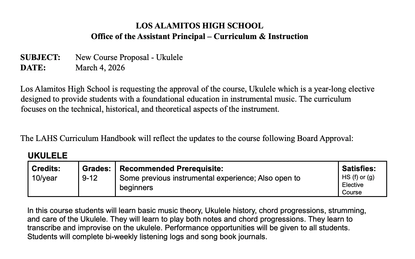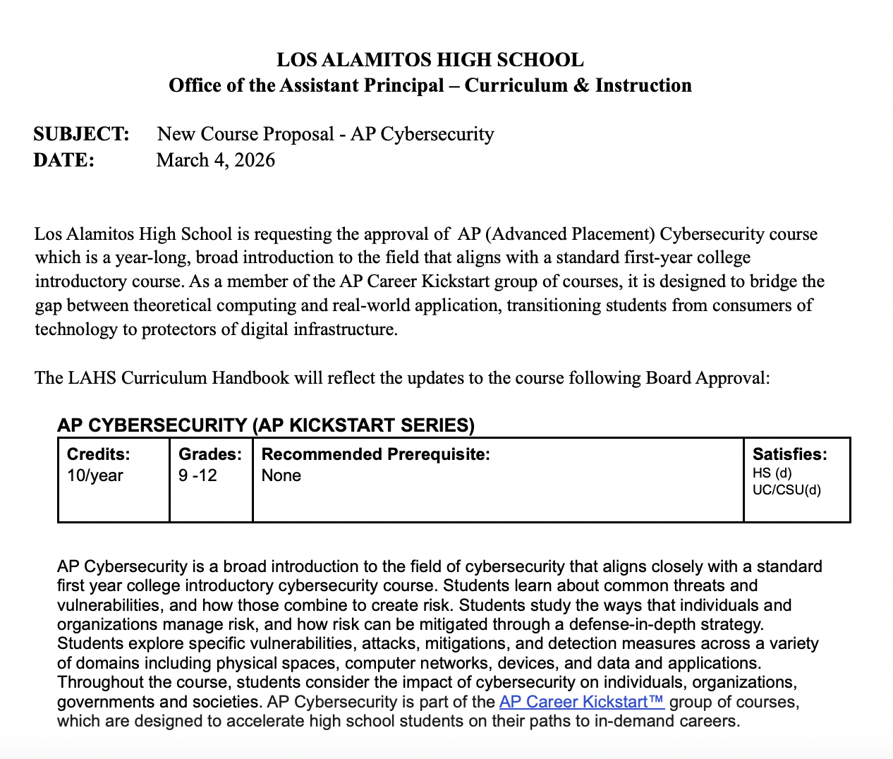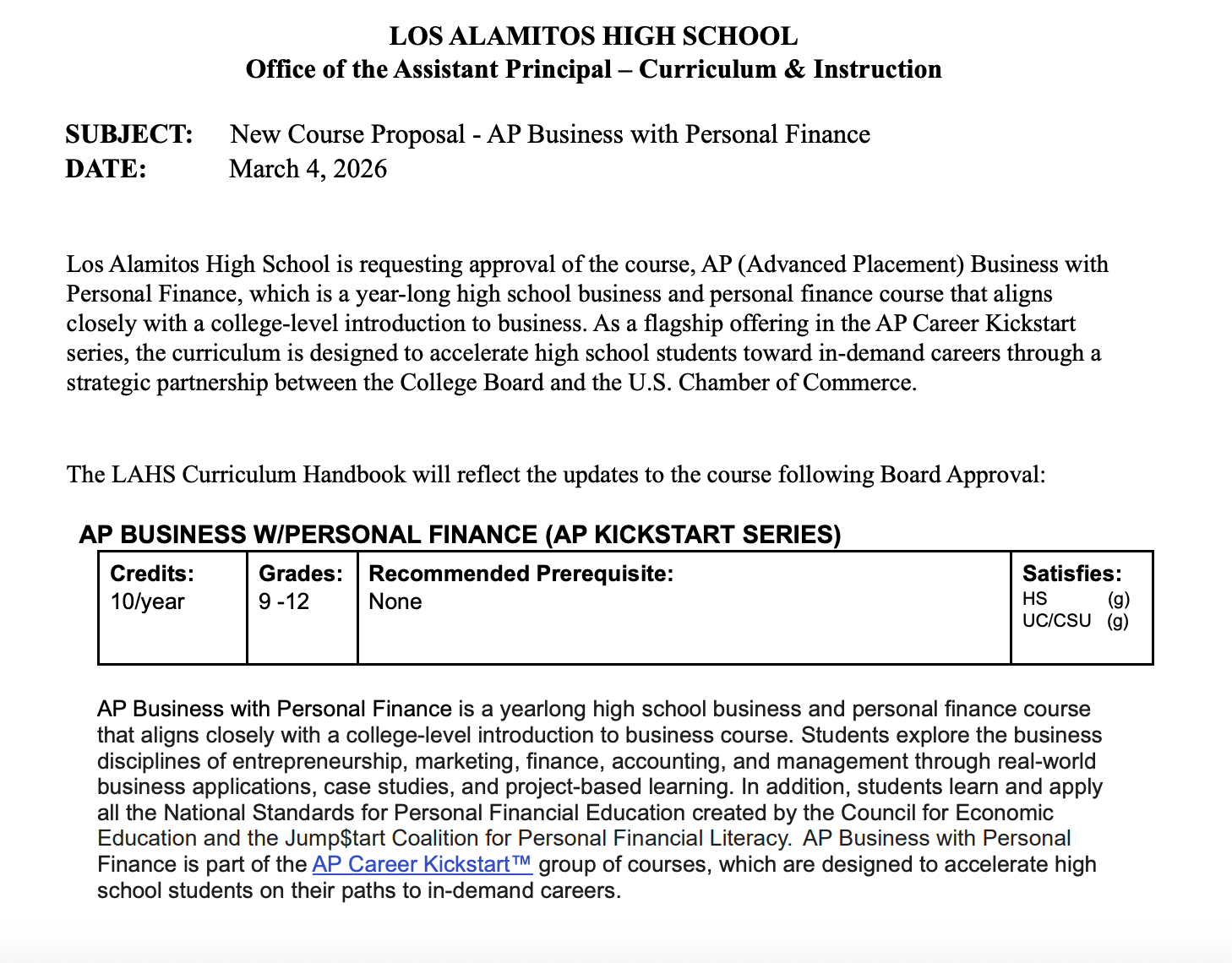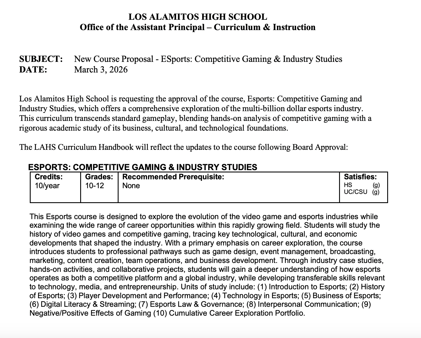 📚 ITEM 11.b NEW COURSES AT LOS ALAMITOS HIGH SCHOOL: The board will consider adding four new courses for high school students including: