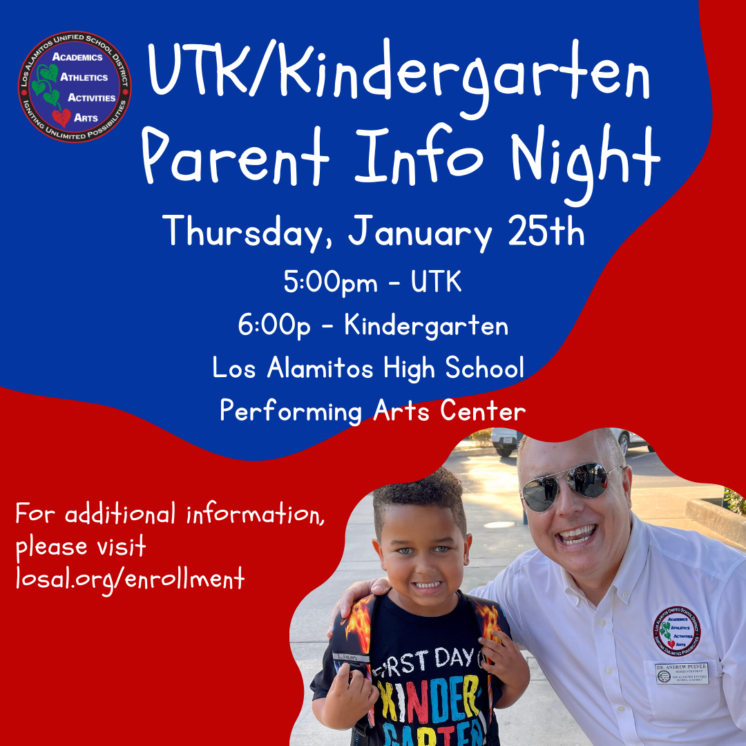 The Los Alamitos Unified School District is another O.C. district holding an information night for parents as it opens up enrollment. It will host parents of incoming UTK and kindergarten students on Jan. 25. The district has nine campuses located across Seal Beach, Rossmoor, and Los Alamitos.