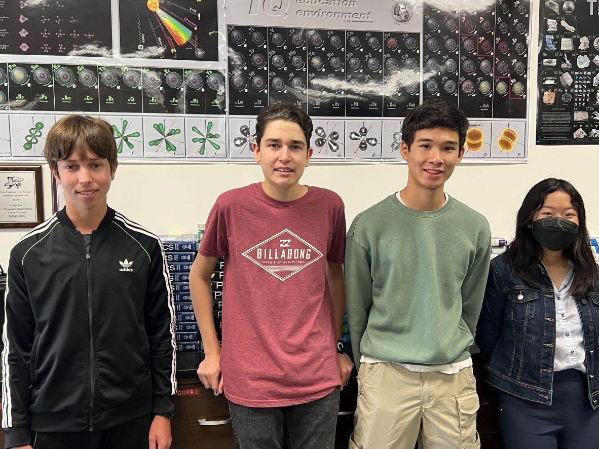 Juan Carrion, Gabriel Mee, Zachary Zonni and Katelyn Ngo, all sophomores at LAHS, were honored for their achievement at the Orange County ACS High School Chemistry Awards Banquet in Irvine on May 17.