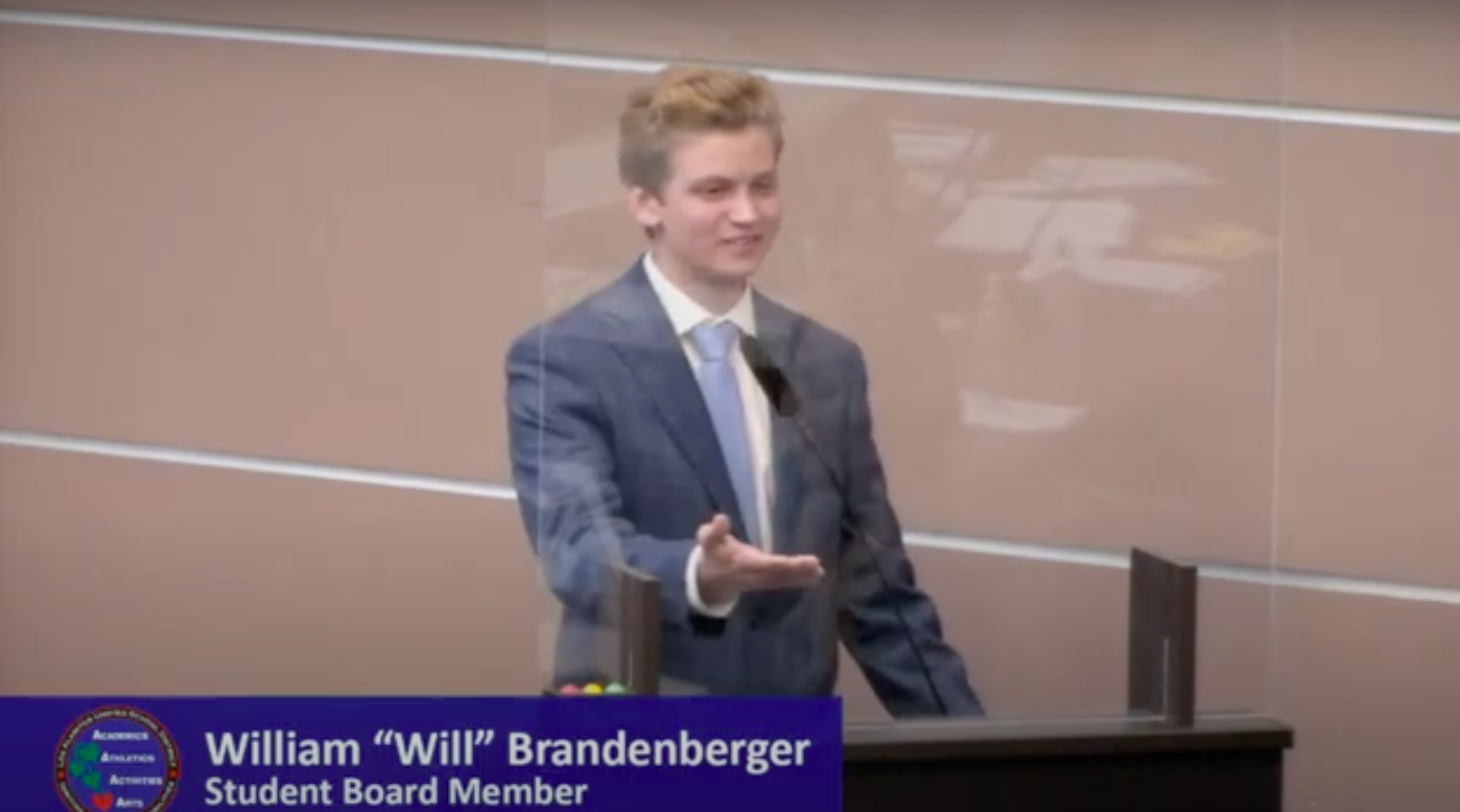 “Will put his heart and soul into every board report and the board members were receptive and supportive in so many ways. We are very thankful to the board for having such an impact on Will’s senior year,” Will’s mother, Amy Brandenberger, wrote in part of a text message to Spotlight Schools.