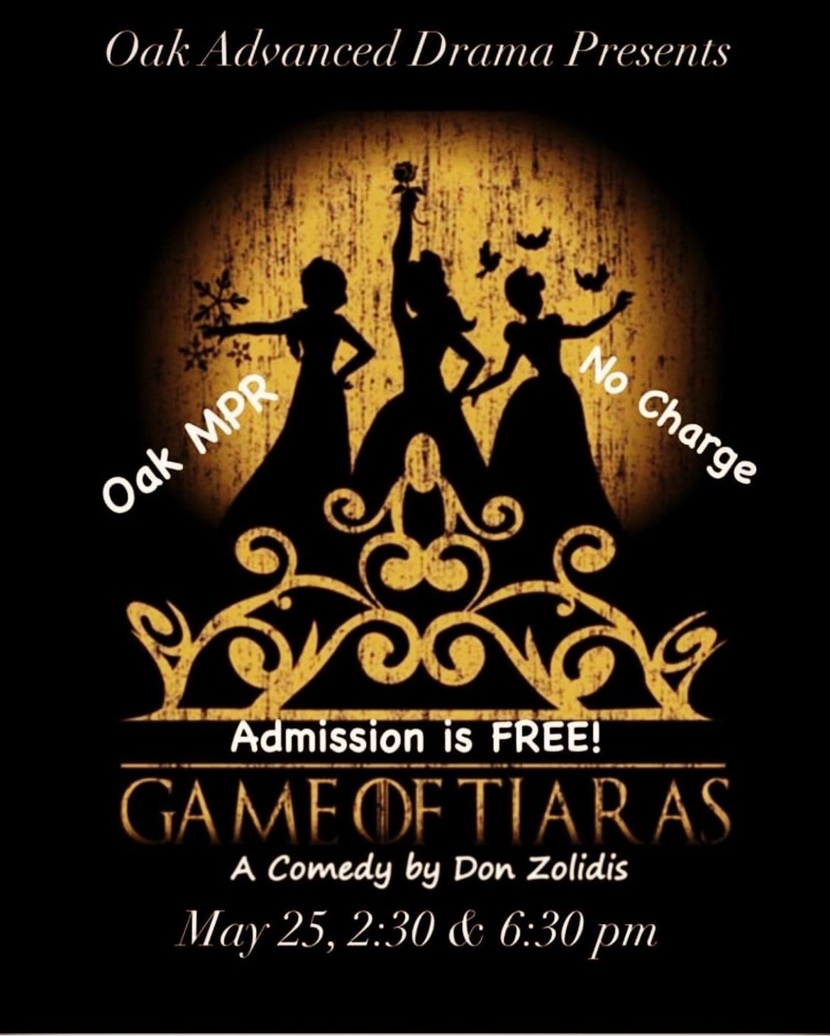 HAPPENING TOMORROW, MAY 25: Performance at Oak Middle School of Game of Tiaras. Details below.