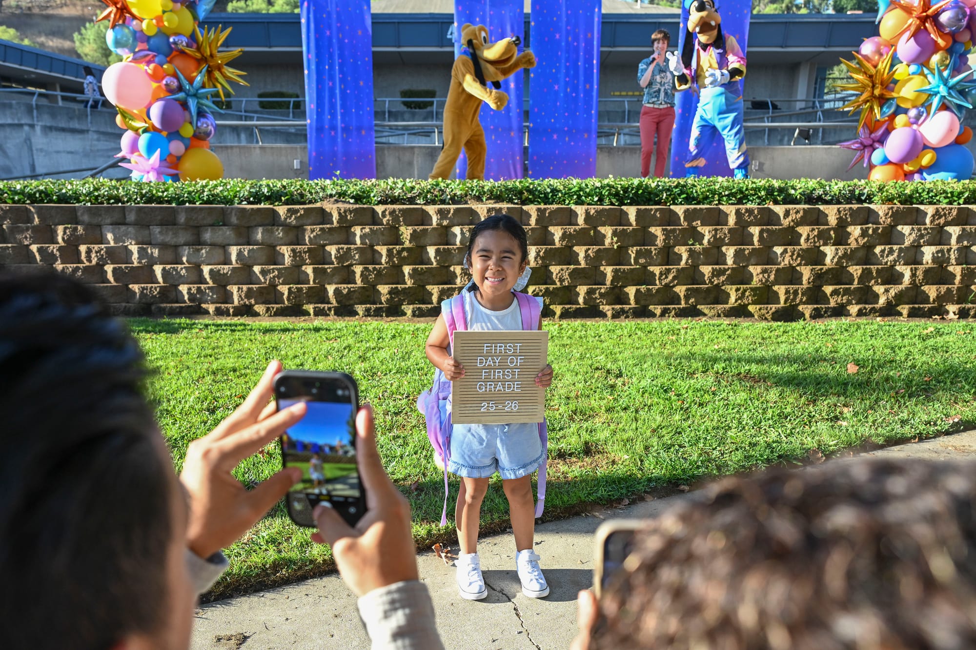 For a few select schools in Anaheim, the school year kicked off with surprises from their world-famous neighbor, the Disneyland Resort. The legendary theme park known as "The Happiest Place on Earth" is celebrating its 70th anniversary. As part of its â70 Happiest Hoursâ initiative, Disneyland threw a first day of school party for more than 800 students and staff at Crescent Elementary in the Orange Unified School District.