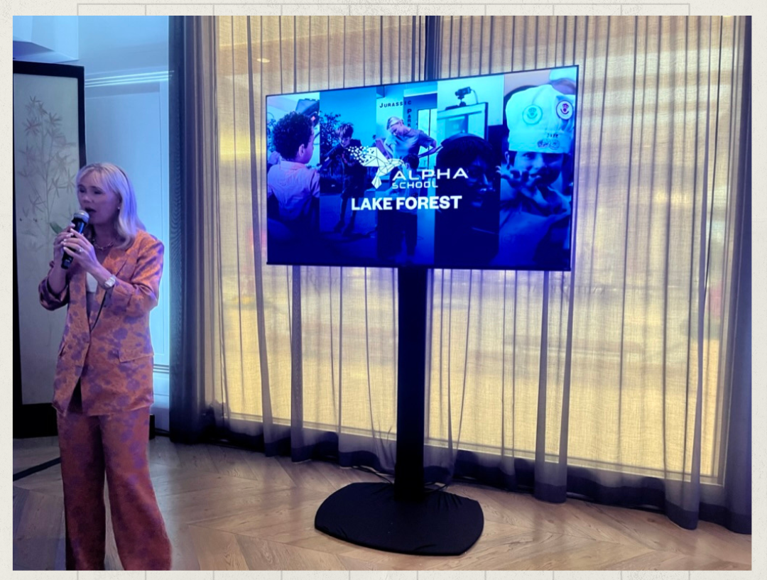 Alpha School says it is reimagining education by disrupting the teacher-standing-in-front-of-the-classroom model of instruction embraced by traditional K-12 schools for decades. Students spend two hours a day completing personalized academic assignments at a computer with A.I.-powered software and applications.