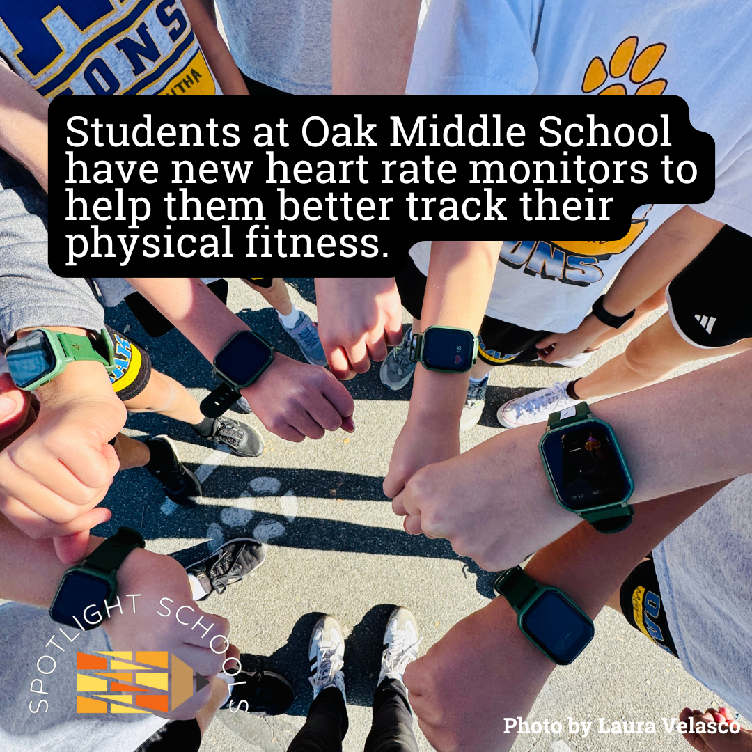 Oak Middle School P.E. teacher Laura Velasco used her LAEF grant to purchase 40 heart rate monitors for students. Her hope is that the new tools prompt kids to think differently about physical fitness.