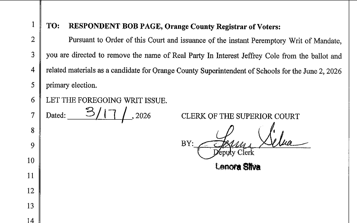 In a phone interview, Bucher explained that he filed the lawsuit arguing Dr. Cole lacked a valid credential authorizing him to perform administrative services in California. According to the O.C. Registrar of Voters’ Office, the credential is required to hold the position of O.C. Superintendent of Schools.