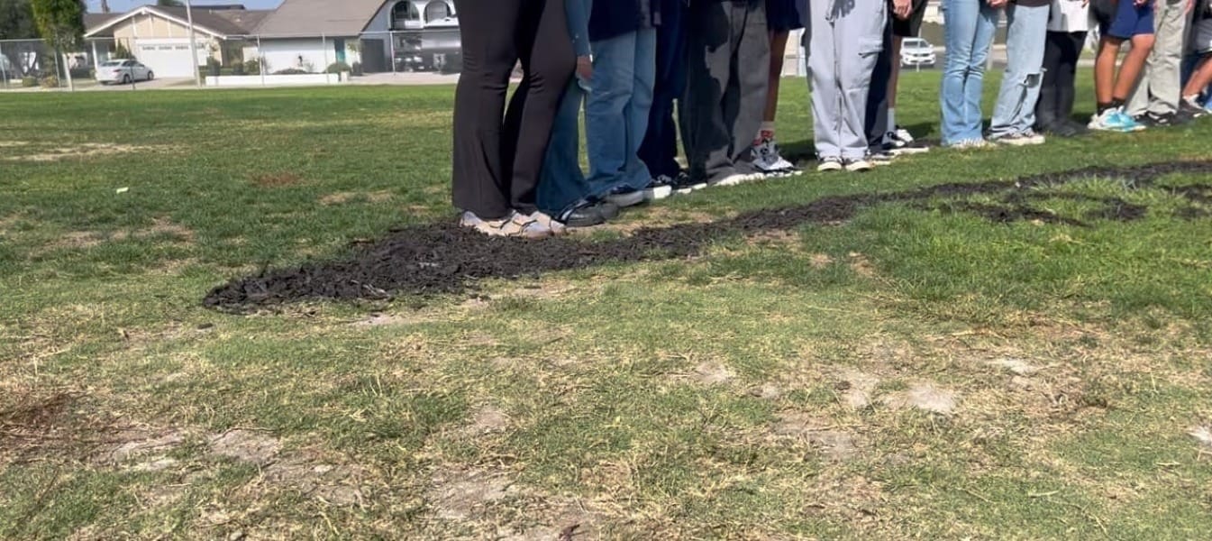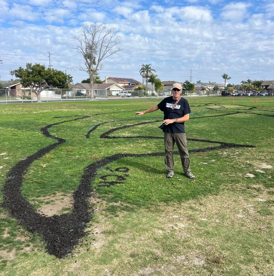 For 25 years, Dancer has brought his lessons and creations to dozens of schools nationwide, including several campuses in Orange County. Students have made eagles, bears, a dragon, and more. At Mesa View, the students created a blue whale – an artwork Dancer had never accomplished before as he needed a school with enough students to make it possible. The blue whale design measured over 130 feet in length, which Dancer noted was bigger than any actual blue whale.