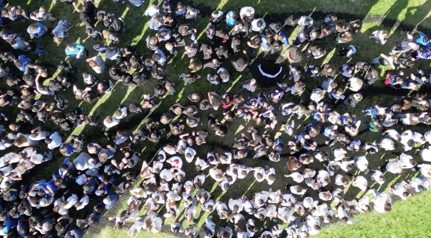 A drone whirred overhead as nearly all of Mesa View Middle School’s roughly 850 students merged onto a field, filling up an area marked off by mulch.