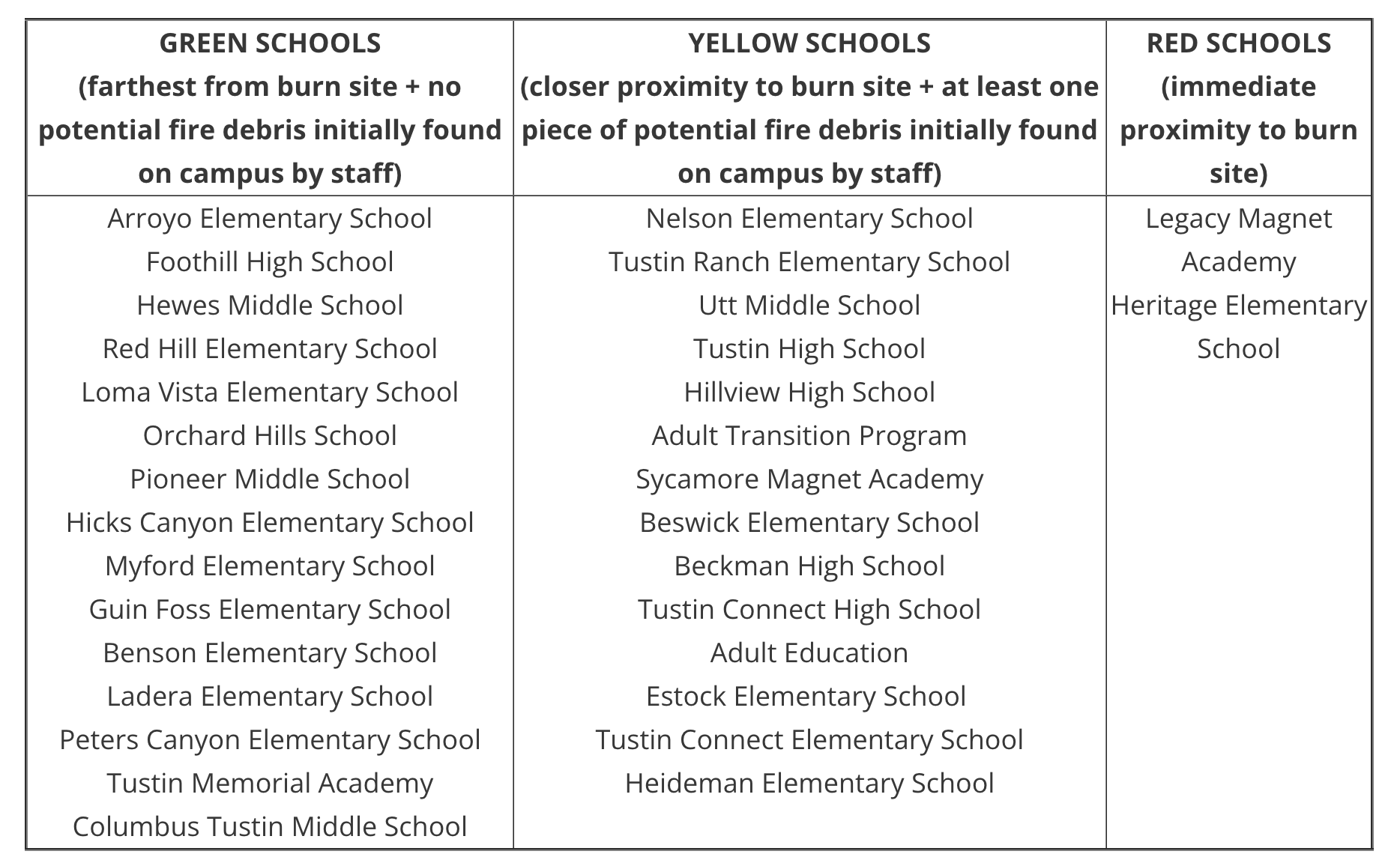 While not shuttering any of their campuses like TUSD, The Santa Ana Unified School District and Irvine Unified School District both posted updates about how they responded to the hangar fire.
